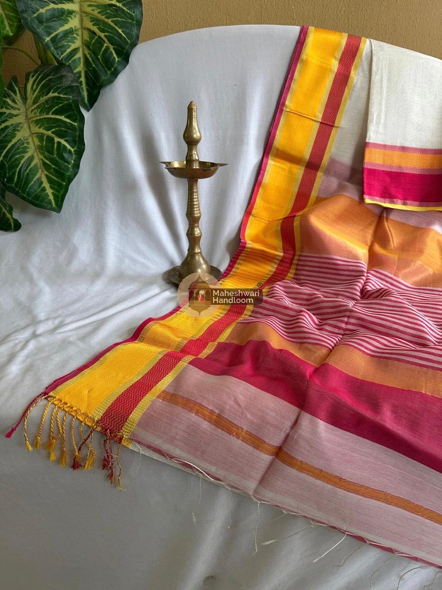 Maheshwari White Ganga Jamuna Rewa Border Saree