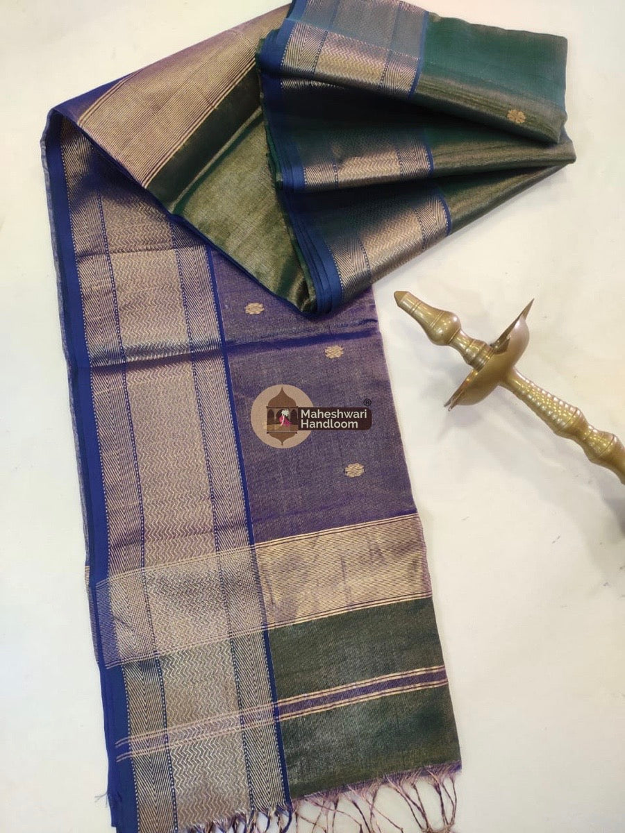 Green Maheshwari Tissue Butti Saree 06