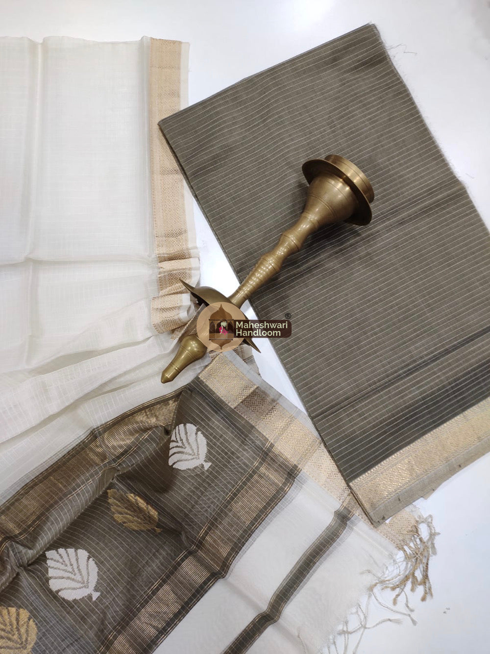 Maheshwari Chocolate Brown Katan Silk Top Dupatta Set - 15