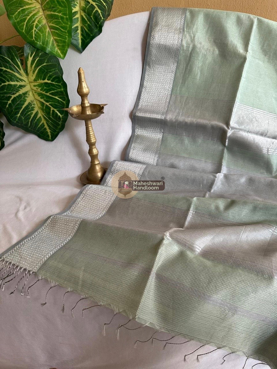 Exclusive Maheshwari Pastel Olive Green Tissue Silk Saree