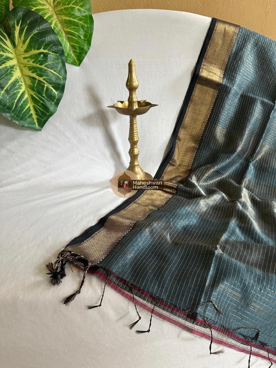 Maheshwari Grey Zari-Checkered Body Sarees with contrast and running Blouse-Pallu