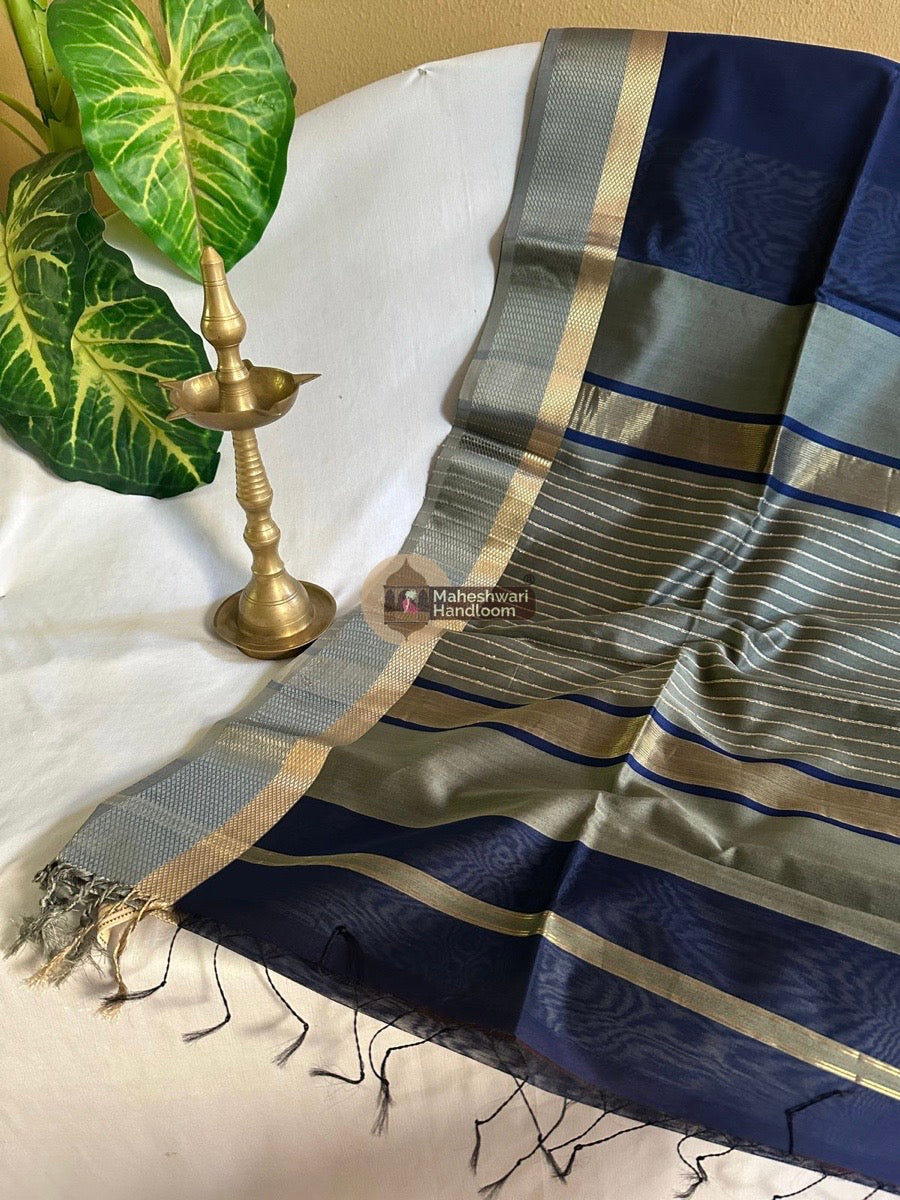 Maheshwari Blue Resham Thread Border Saree