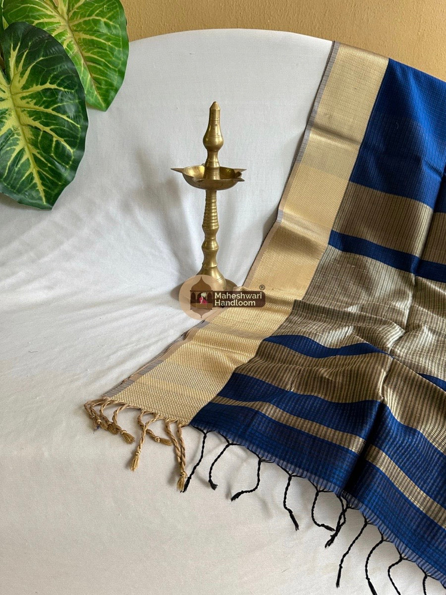 Maheshwari Dark Blue Resham Thread Border Saree 02