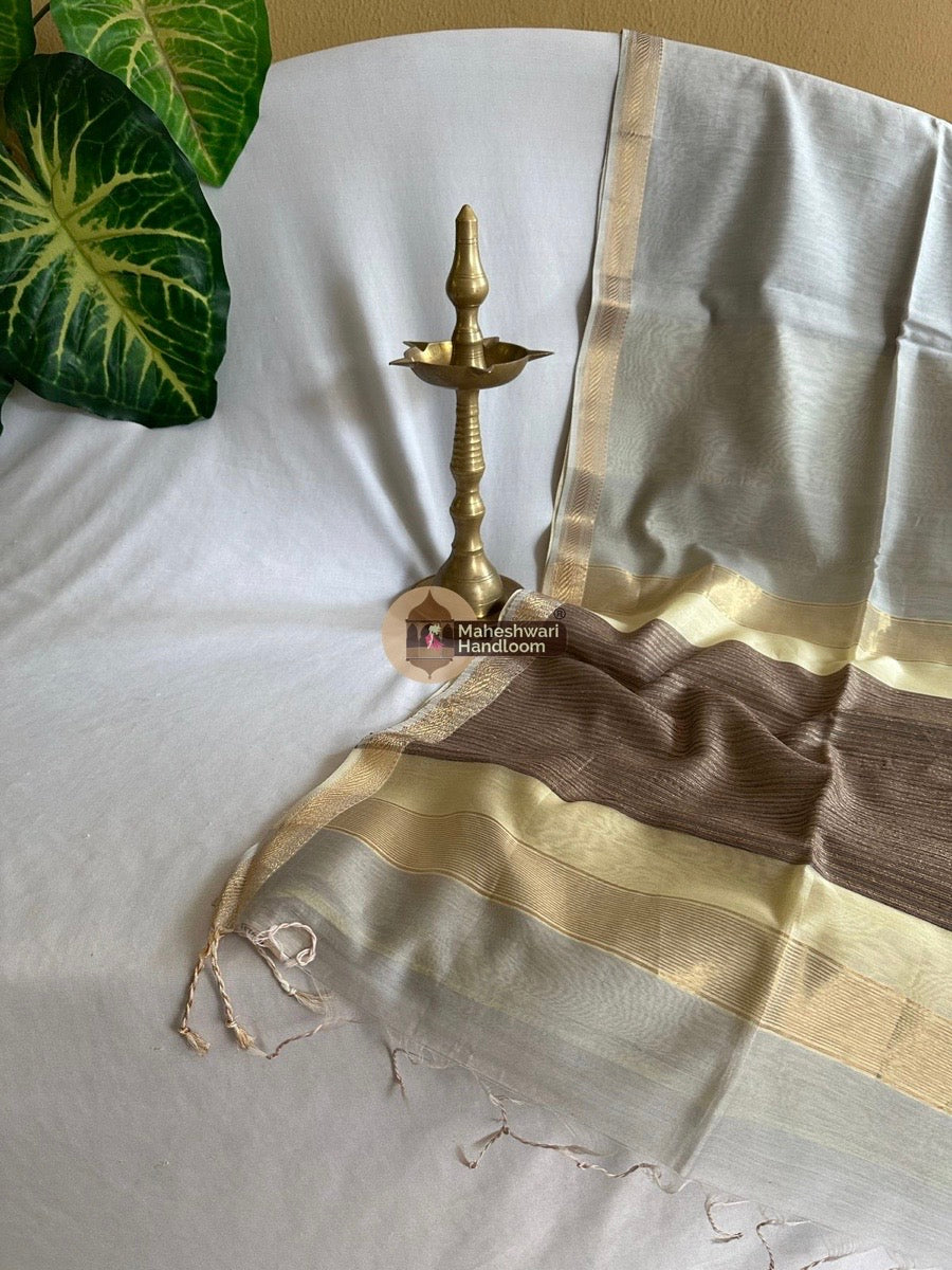 Maheshwari Grey Gicha Weaving Saree 019