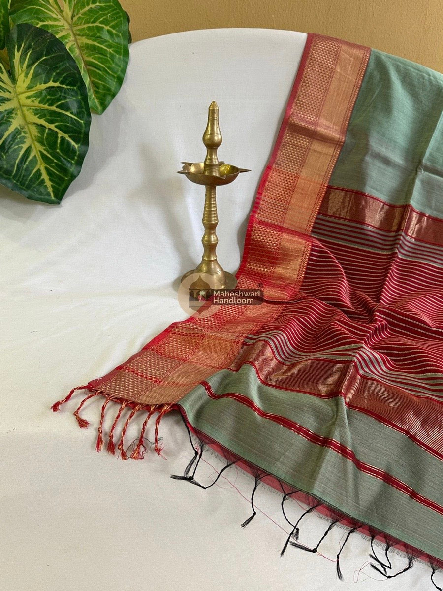 Maheshwari Light Aqua Green Zari Chatai Border Saree