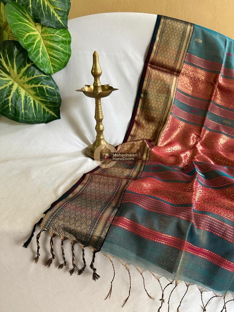 Maheshwari Peacock Blue Tissue Rich Pallu Saree