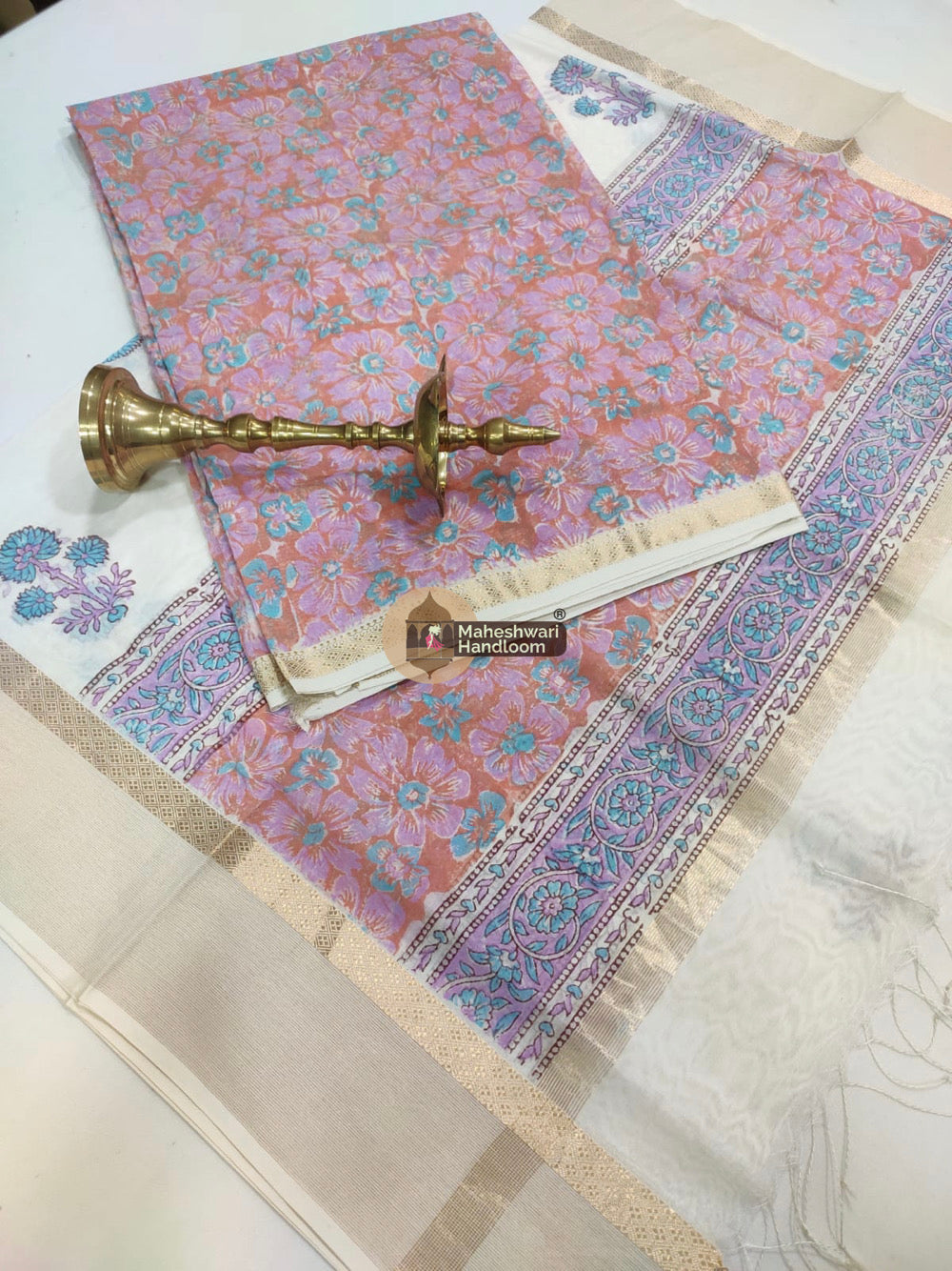 Pink Maheshwari Printed Top Dupatta Suits - 09