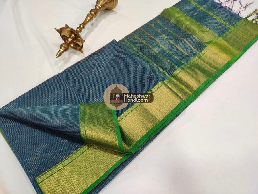 Blue Maheshwari Tissue Checks Saree 12