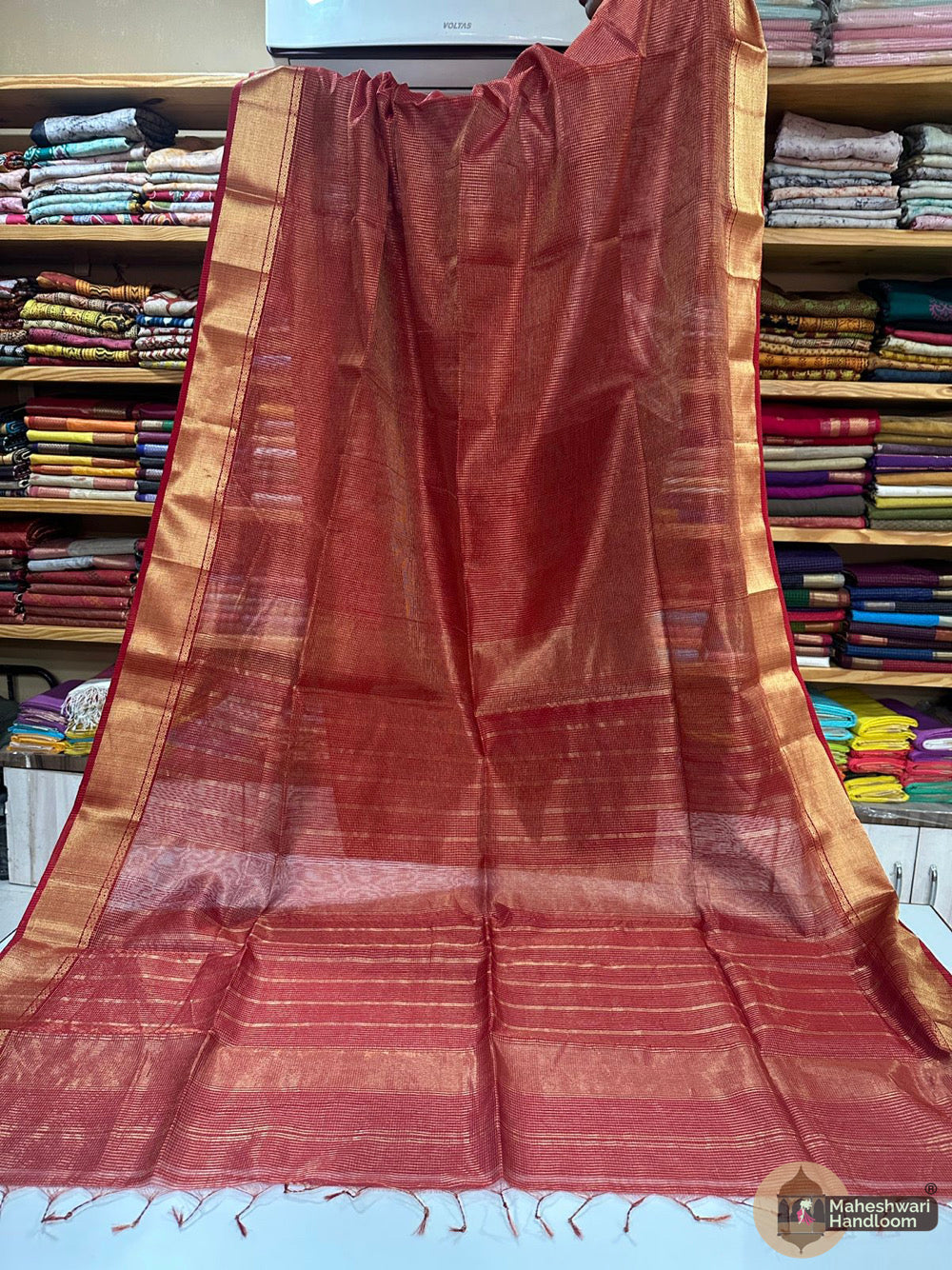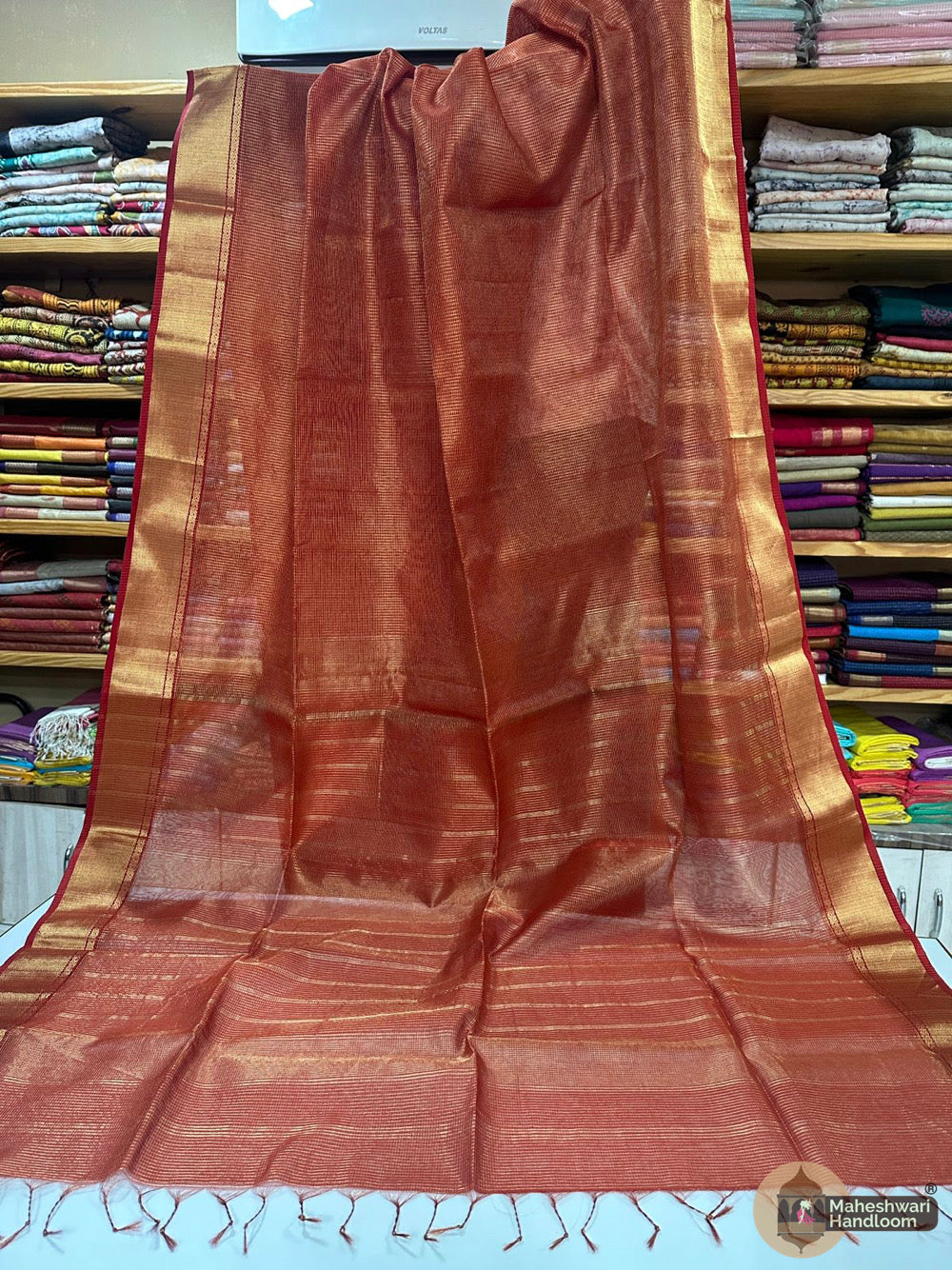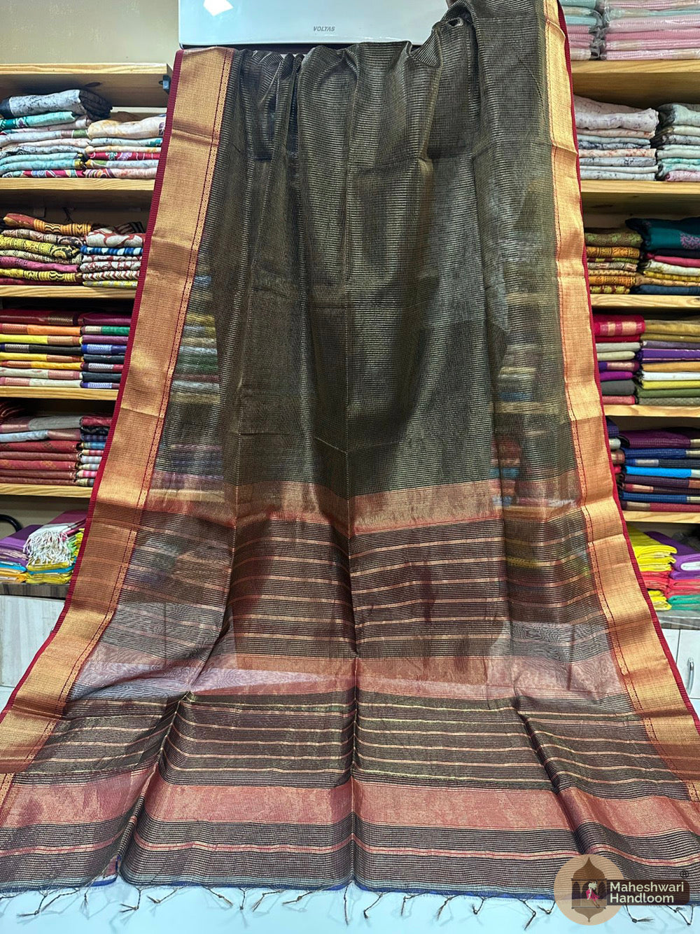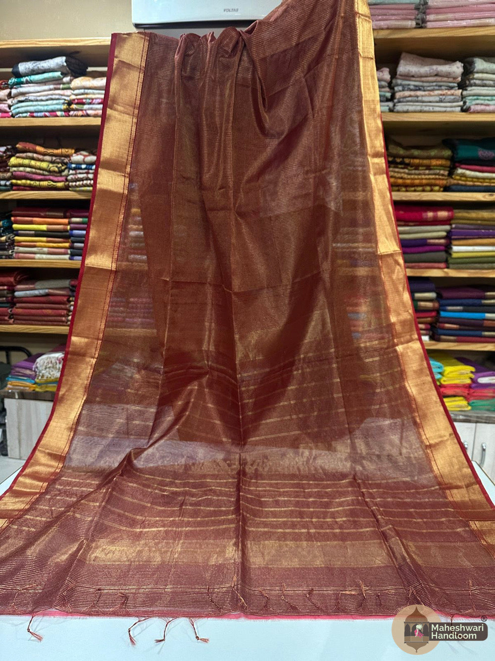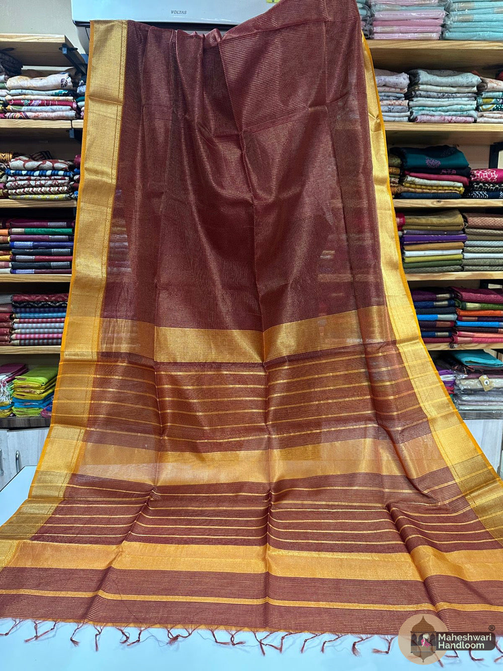 Exclusive Maheshwari Tissue Checks SareesWeaving:Fabric: Silk By CottonLength: 6.2 meters.Blouse: With Blouse 70-80 cm.Washing method: Dry Clean Recommended.Origin: Maheshwar, Madhya Pradesh.