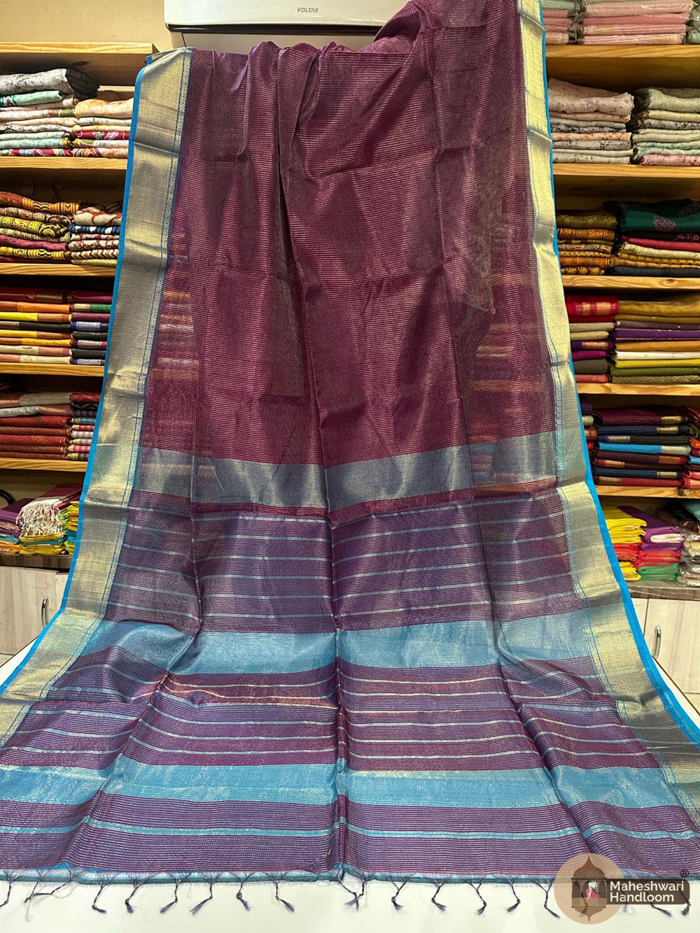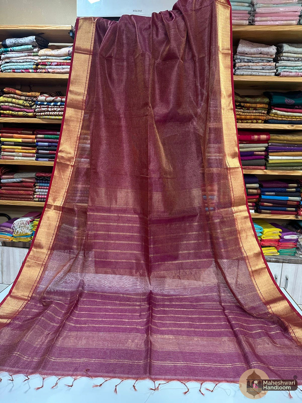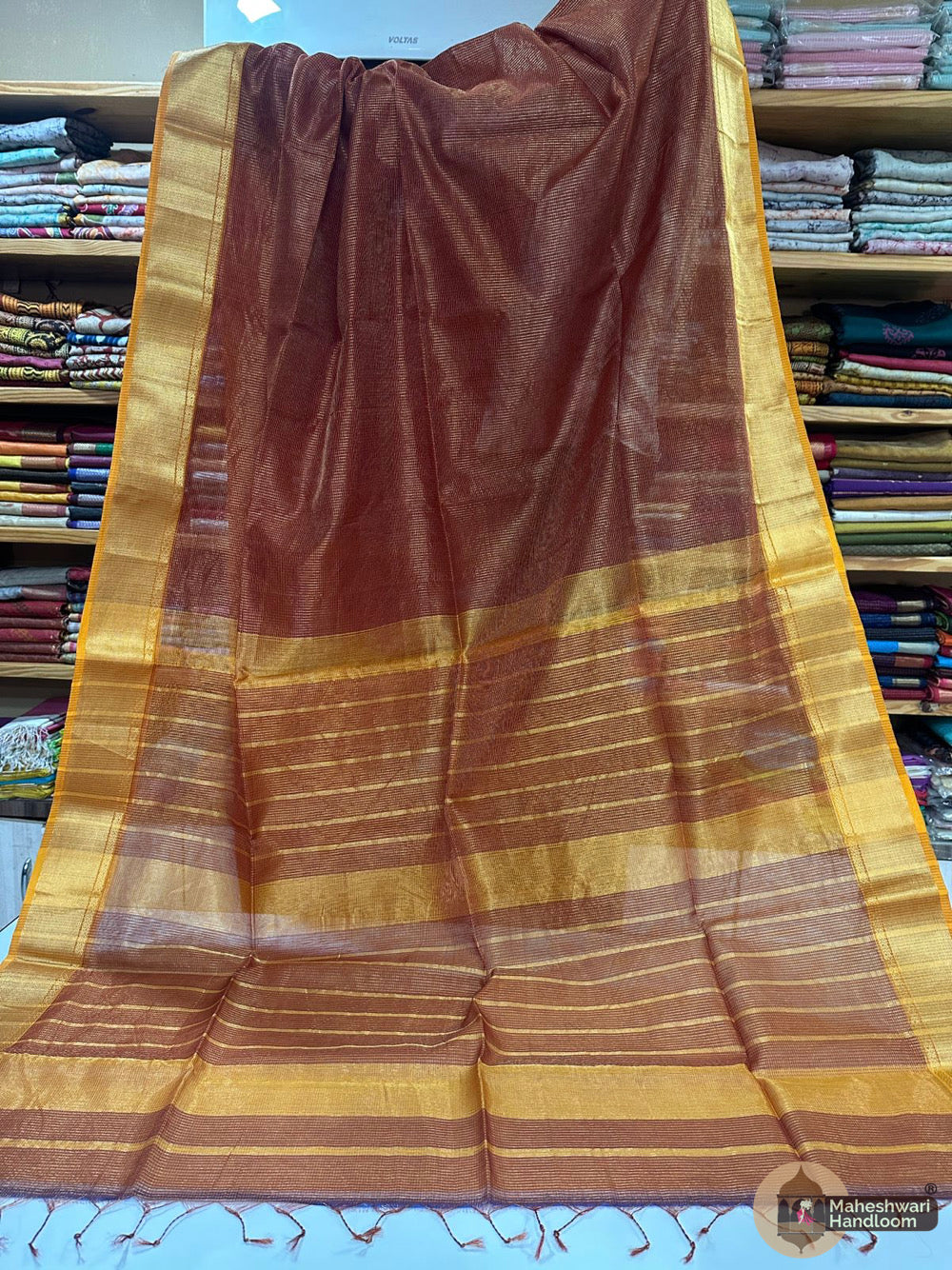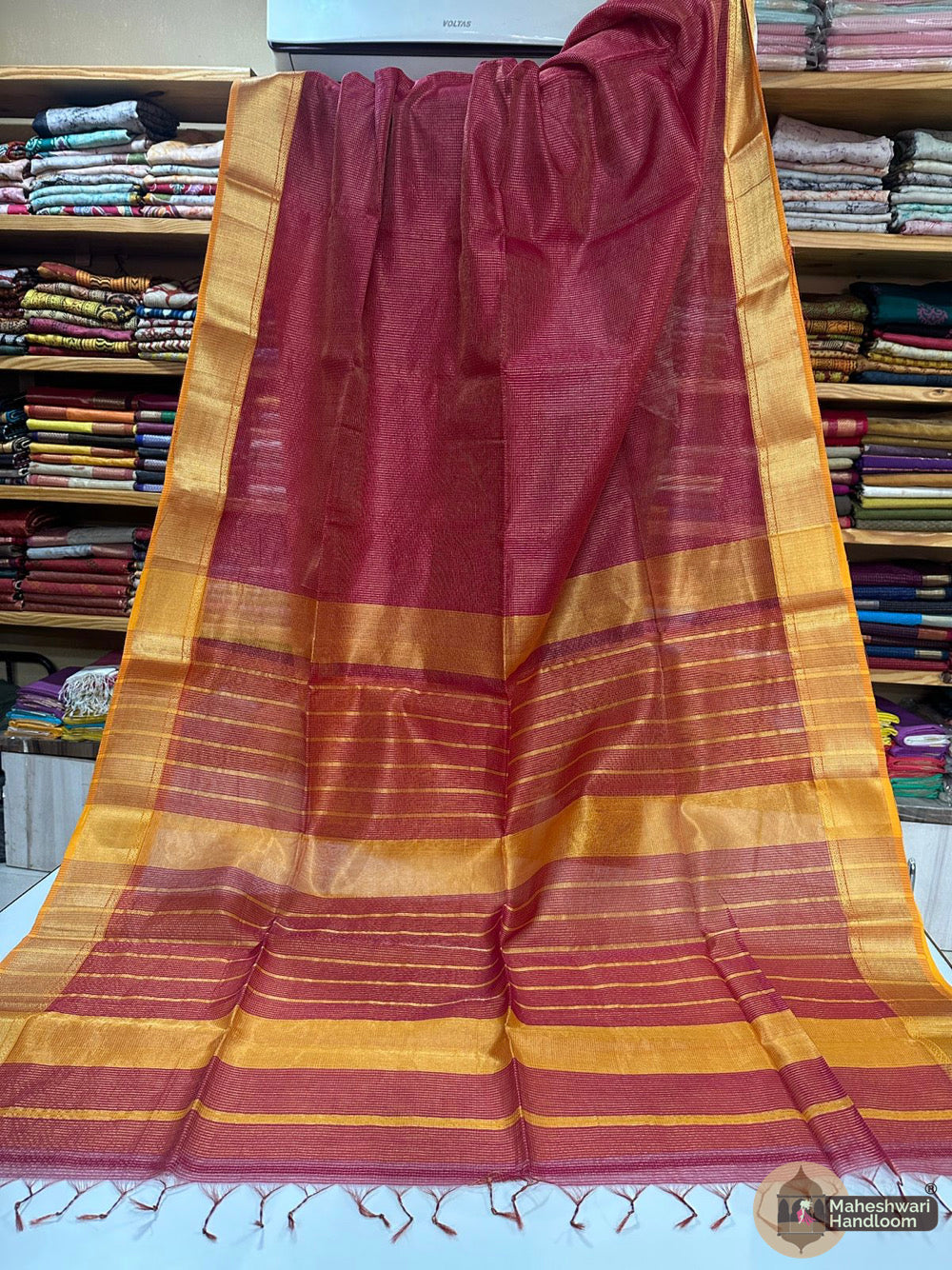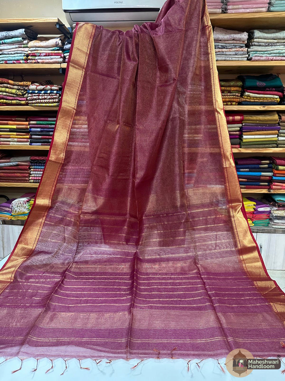 Exclusive Maheshwari Tissue Checks SareesWeaving:Fabric: Silk By CottonLength: 6.2 meters.Blouse: With Blouse 70-80 cm.Washing method: Dry Clean Recommended.Origin: Maheshwar, Madhya Pradesh.