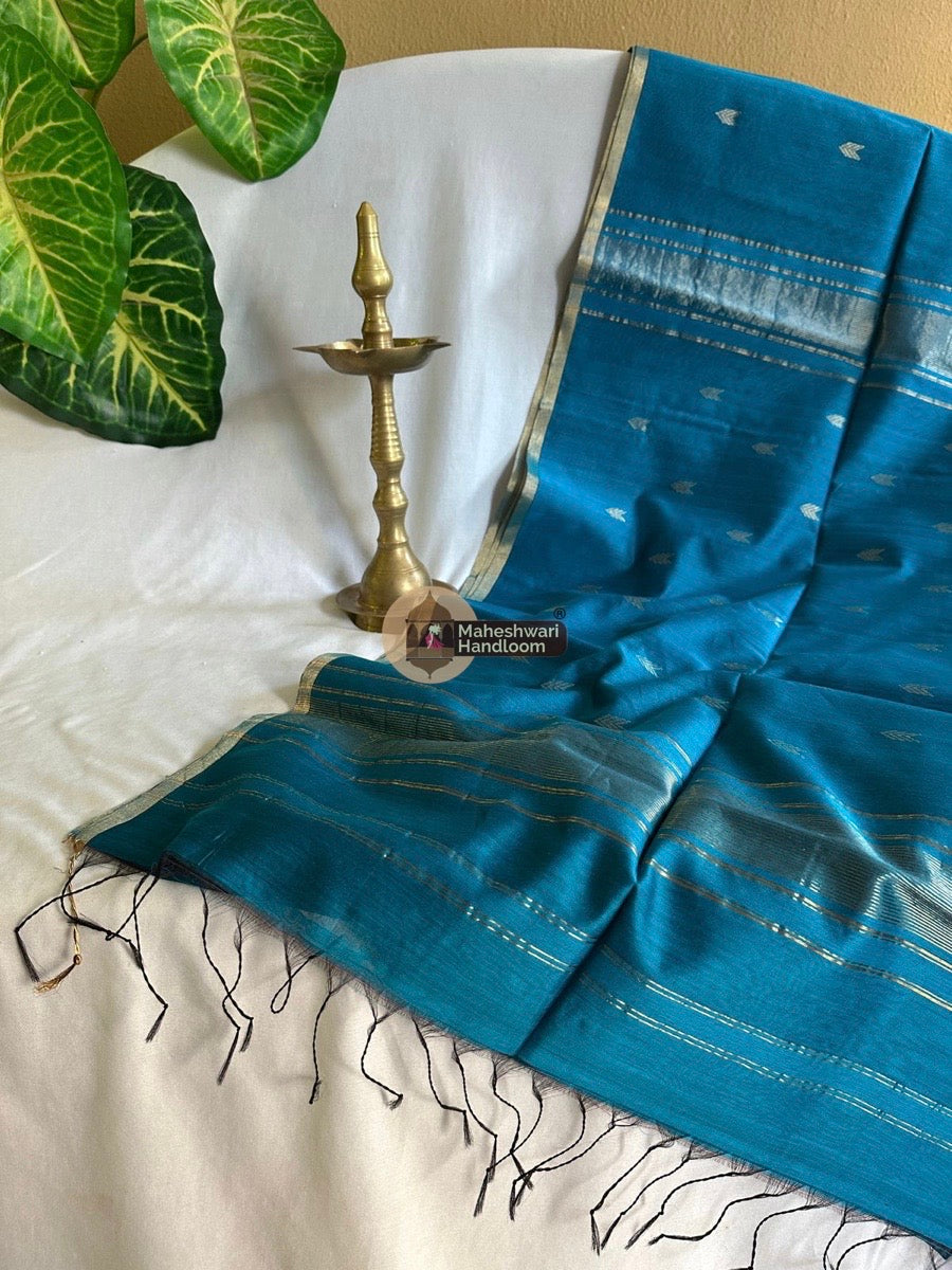 Peacock Blue Maheshwari Zari Butti Saree 010