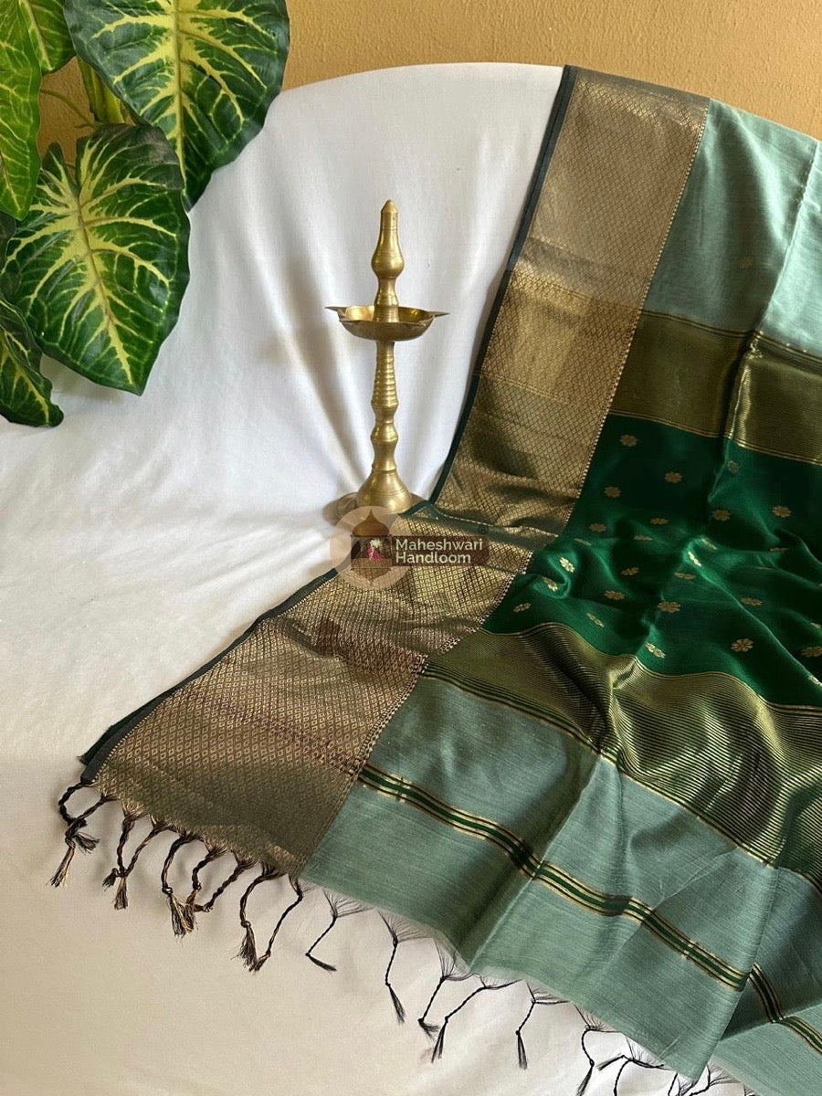 Maheshwari Light Aqua Green Zari Skirt Butti Saree