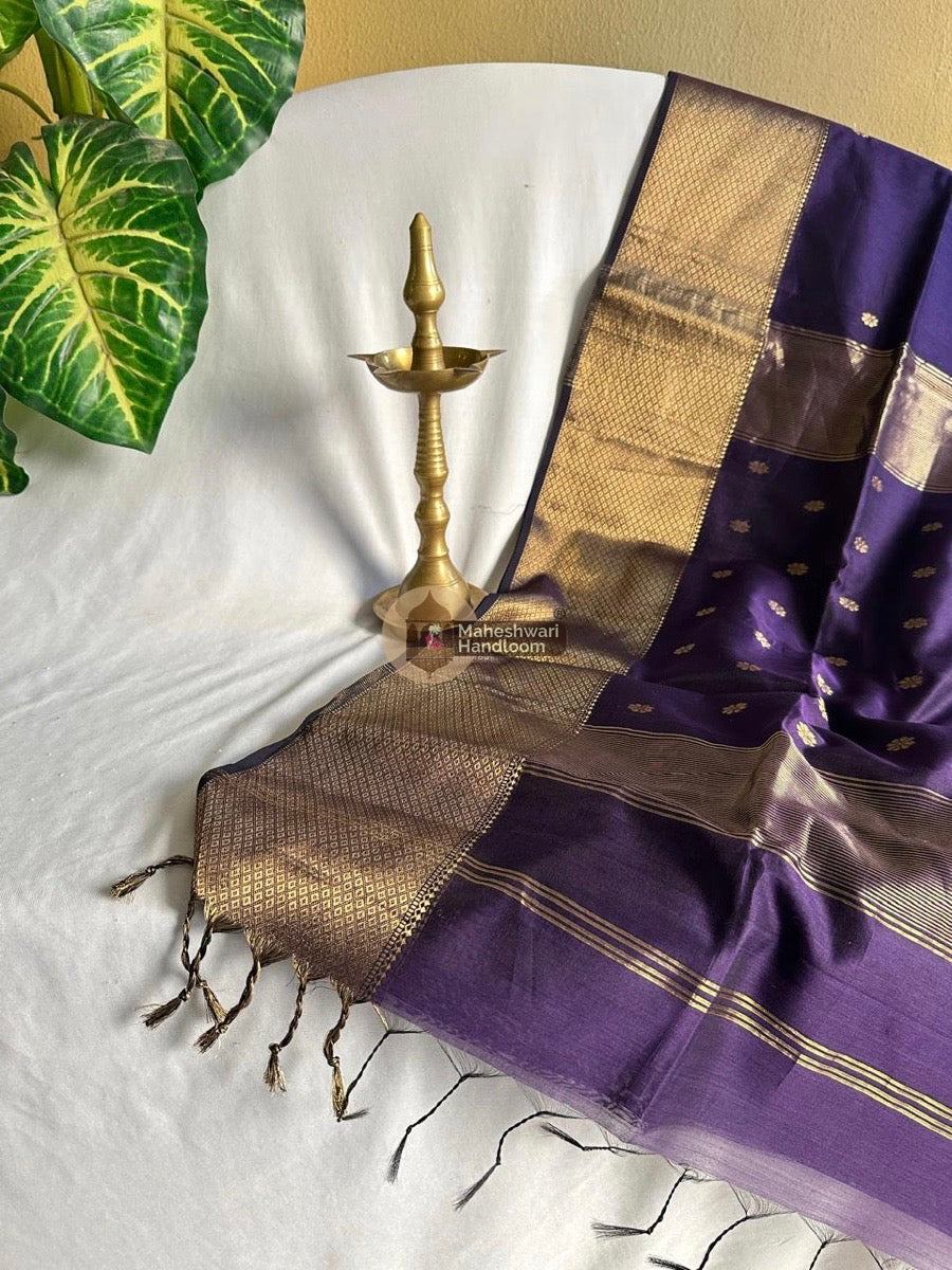 Maheshwari Purple Zari Skirt Butti Saree