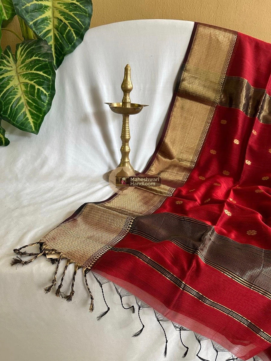 Maheshwari Red Zari Skirt Butti Saree