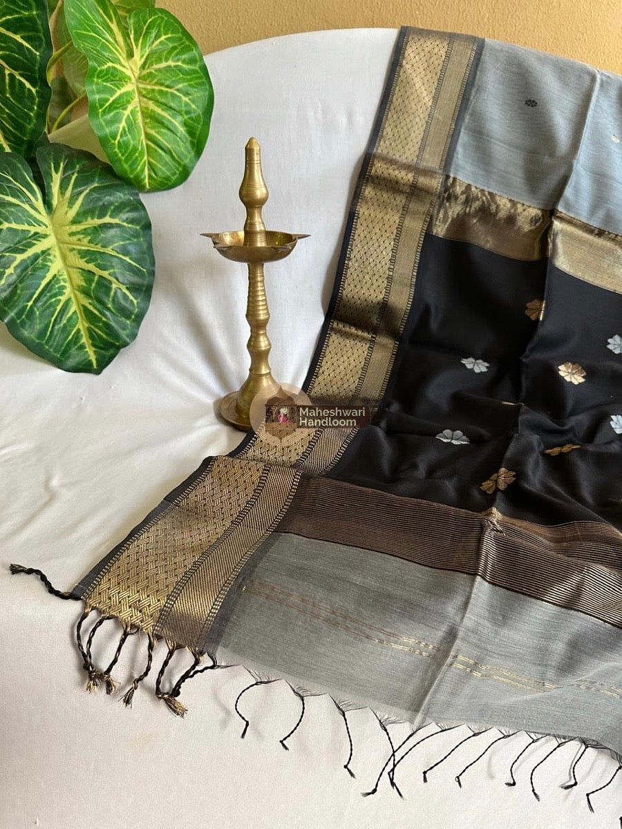 Maheshwari Gray Butta Pallu Zari Border Saree